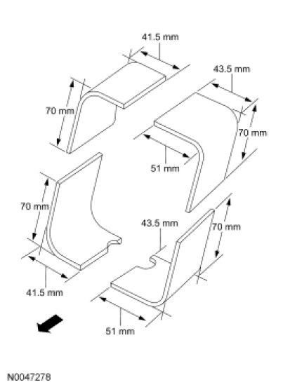 9. NOTE: Observe prescribed welding procedures when carrying out frame rail service kit replacement. For additional information, refer to Welding Precautions - Steel .