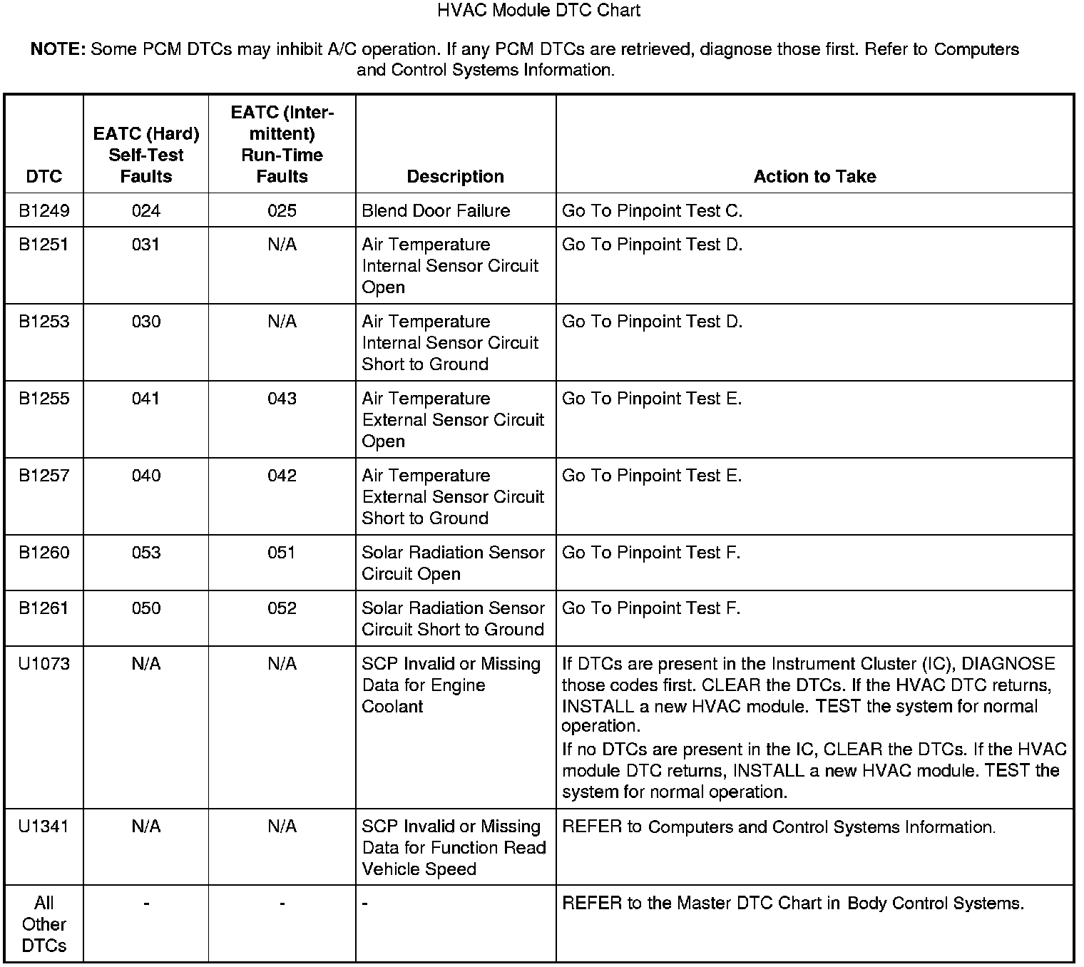 HVAC Module DTC Chart