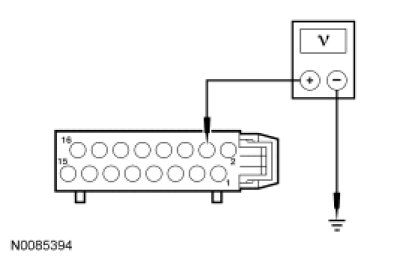 - Measure the voltage between in-line C237-4, circuit 1040 (RD/BK), instrument panel harness side and ground.