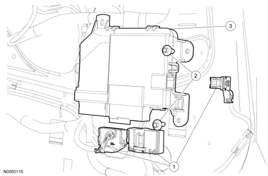 NOTE: Prior to the replacement of the Driver Door Module (DDM), it is necessary to upload the module configuration information to the scan tool. This information must be downloaded into the new DDM after installation.