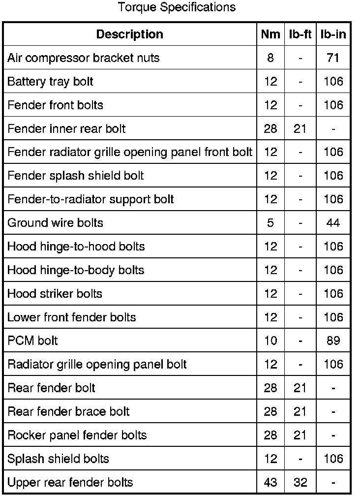 Front End Body Panels