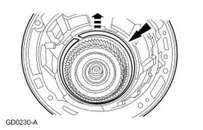 37. NOTICE: Remove the assembly carefully to prevent damage to the overdrive band friction material by the reverse clutch drive lugs.