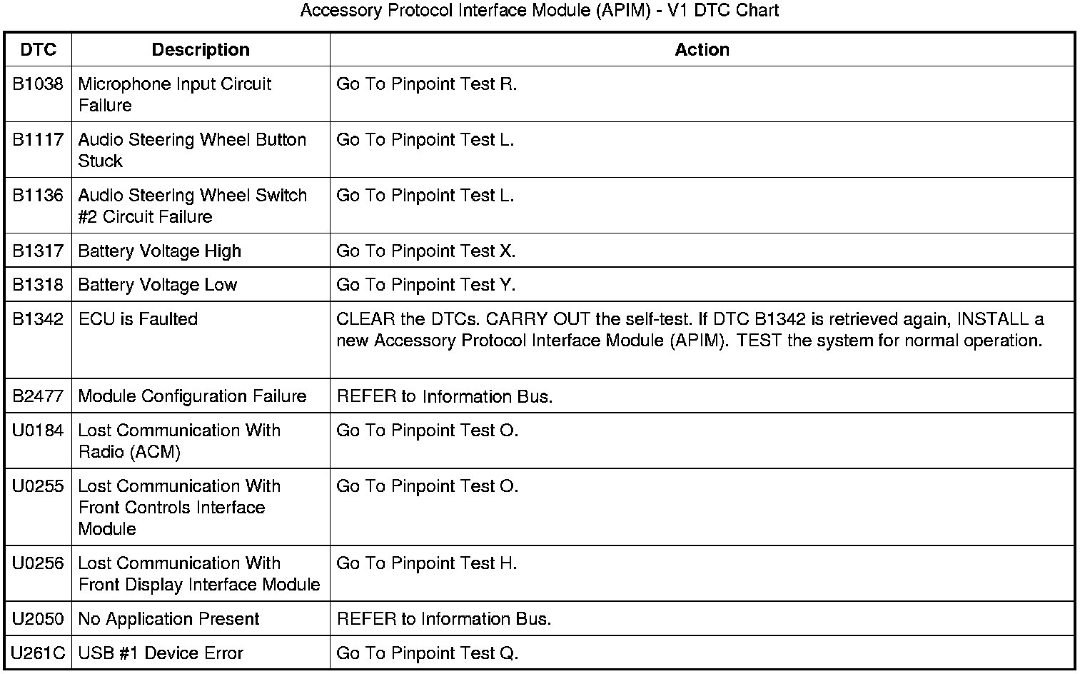 Accessory Protocol Interface Module (APIM) - V1 DTC Chart