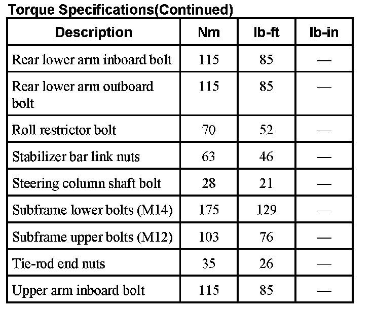Torque Specifications (Part 2):