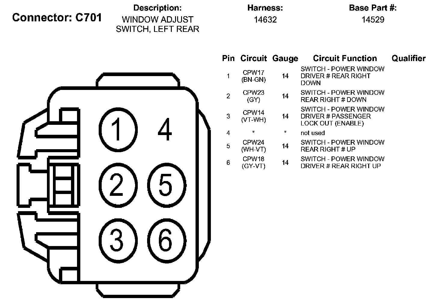 Window Adjust Switch, Left Rear