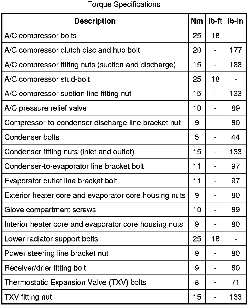 Torque Specifications