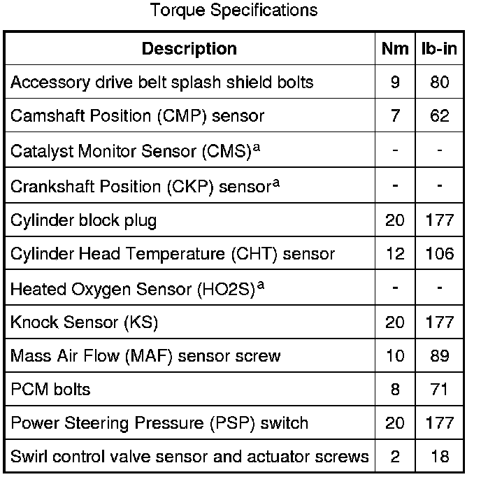 Torque Specifications