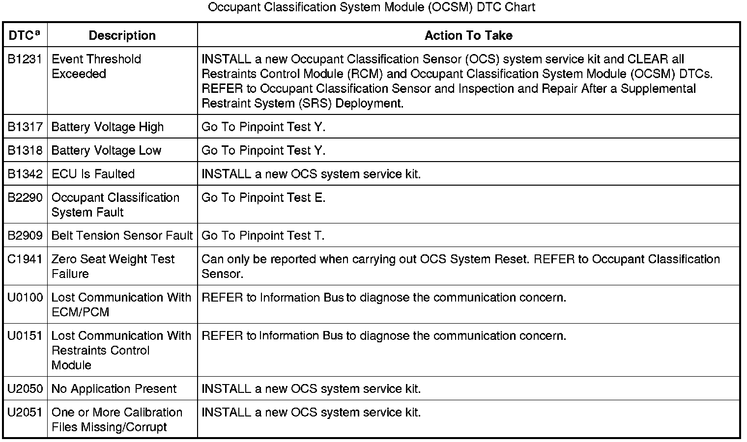 DTCs can be retrieved from the RCM and the OCSM with a scan tool via the DLC.