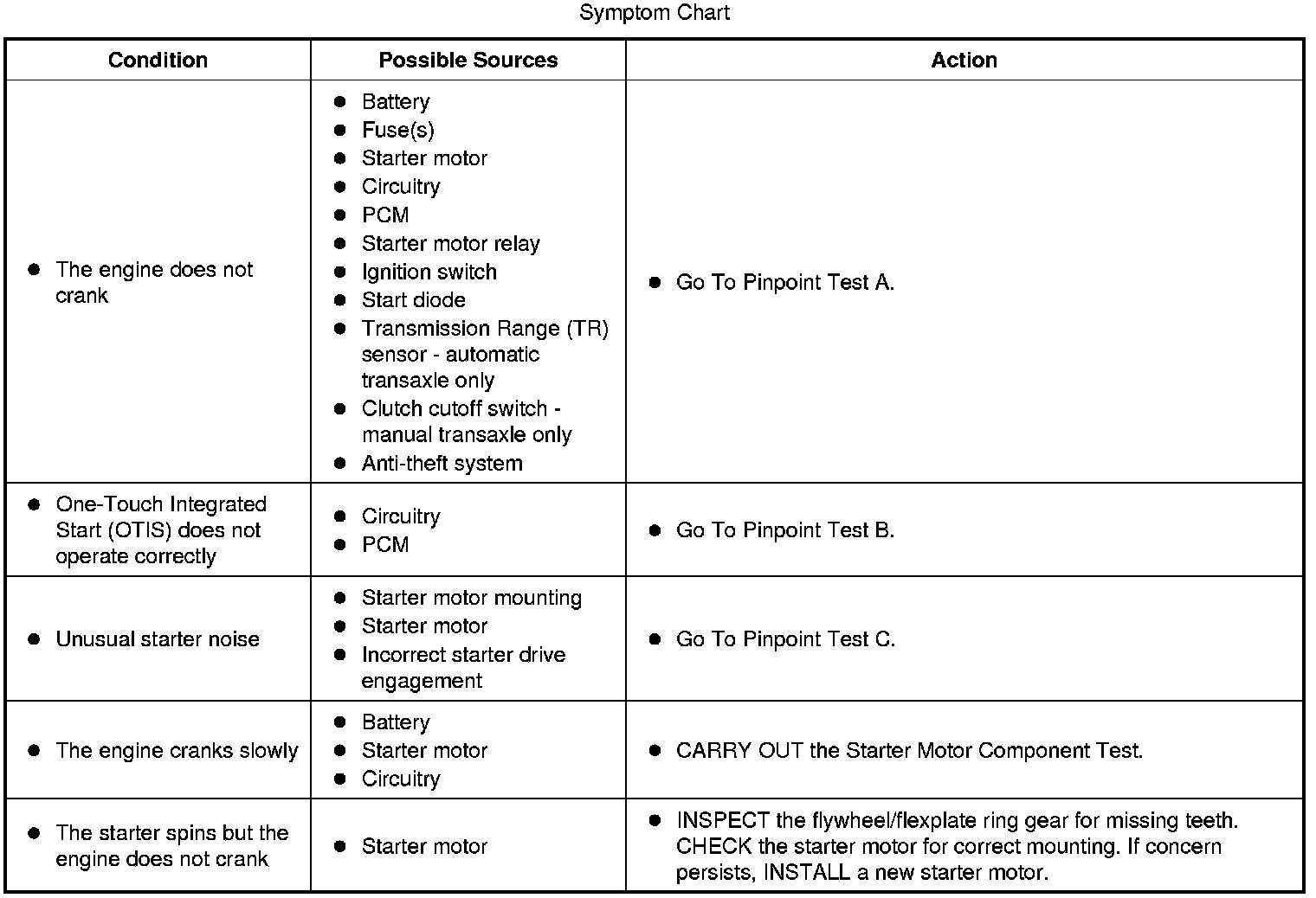 Symptom Chart:
