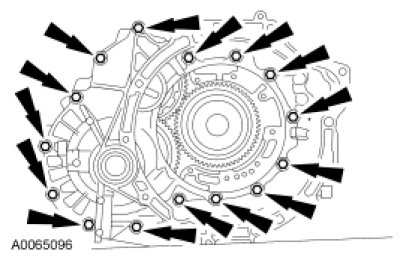 52. Remove the bolts and separate the converter housing from the transaxle case.