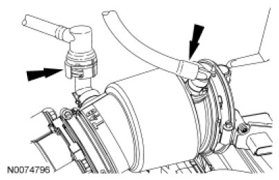 Disconnect the crankcase ventilation hose and disconnect the brake booster vacuum hose.