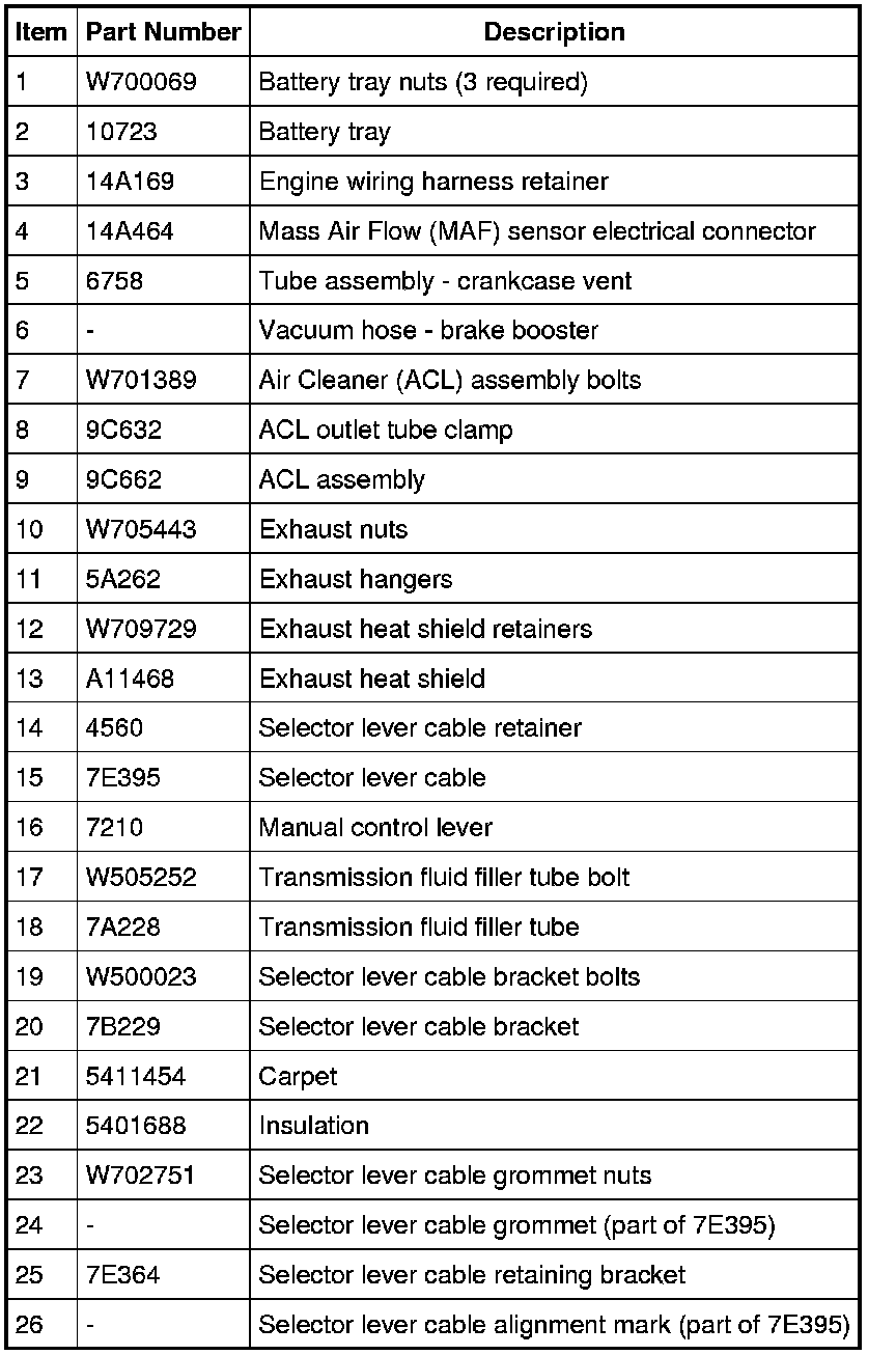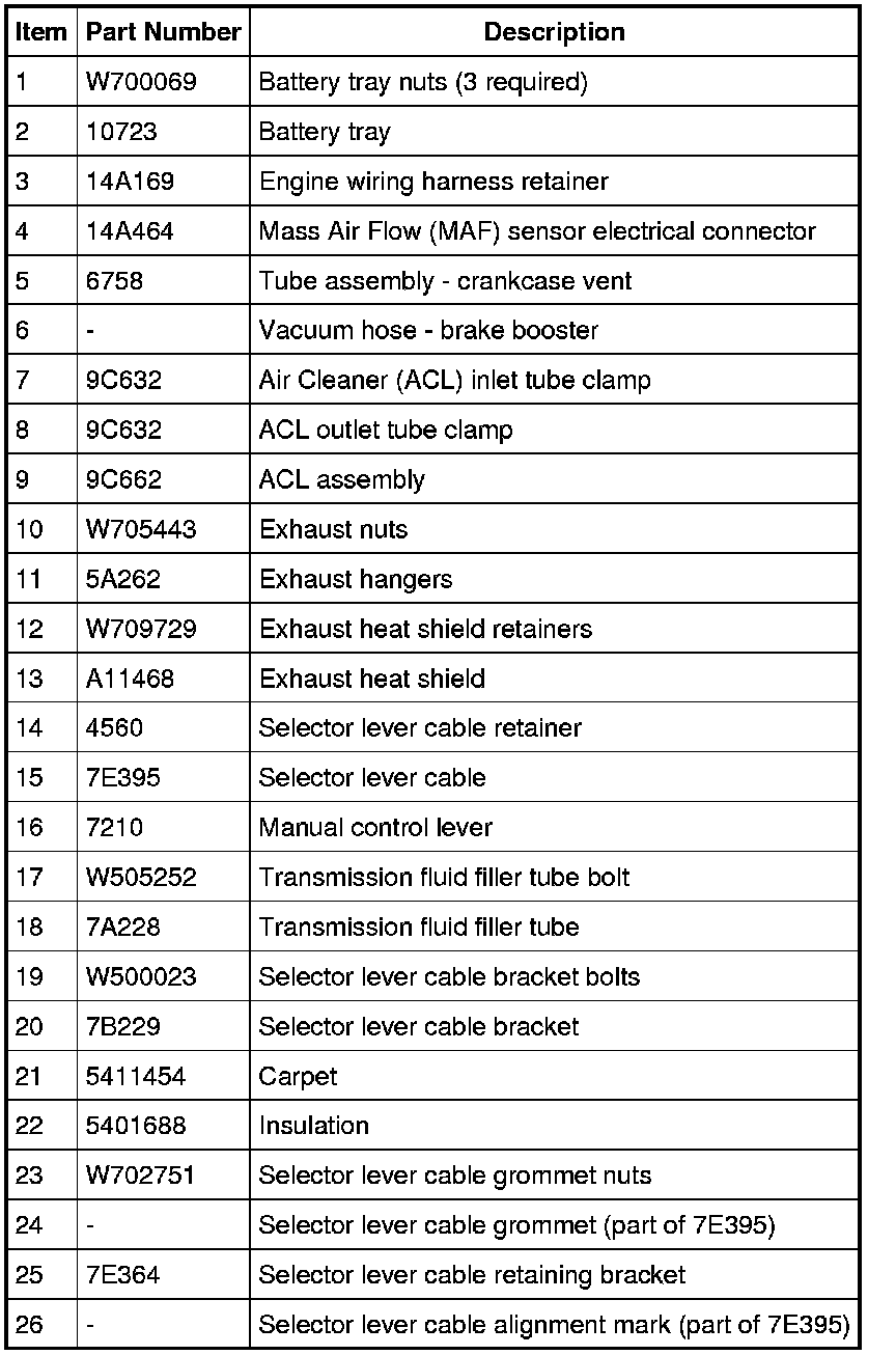 13. Disconnect the selector lever cable from the retainer on the unibody and the selector lever cable retaining bracket on the transaxle.