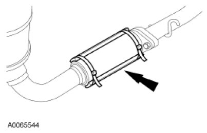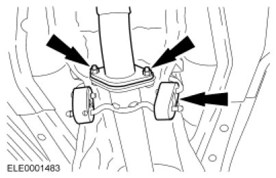 11. Disconnect the center exhaust hanger and support the exhaust with wire.