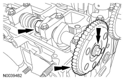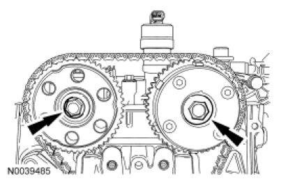 1. Install the camshaft sprockets and the bolts. Do not tighten the bolts at this time.