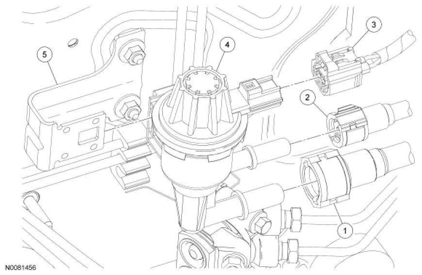 4. Disconnect the 2 vapor jumper tube-to-EVAP canister purge valve quick connect couplings.