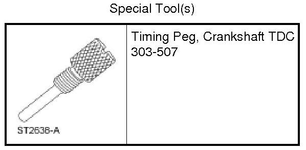 Install the Crankshaft TDC Timing Peg and turn the crankshaft clockwise until the crankshaft contacts the Crankshaft TDC Timing Peg.