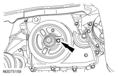 4. Turn the crankshaft clockwise until the hole in the crankshaft pulley is in the 3 o'clock position.