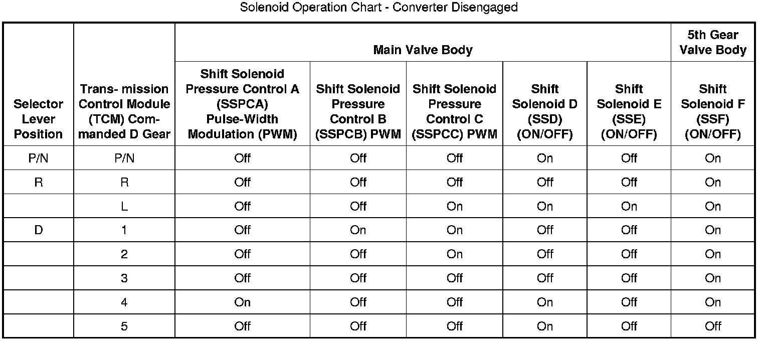 Pressure Control Solenoid A (PCA) and Pressure Control Solenoid B (PCB) PWM solenoid percentage varies through all gears.