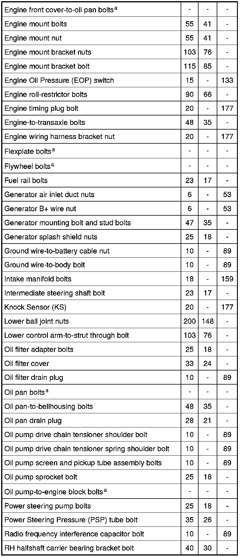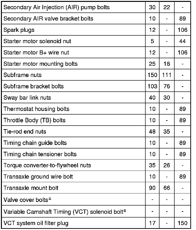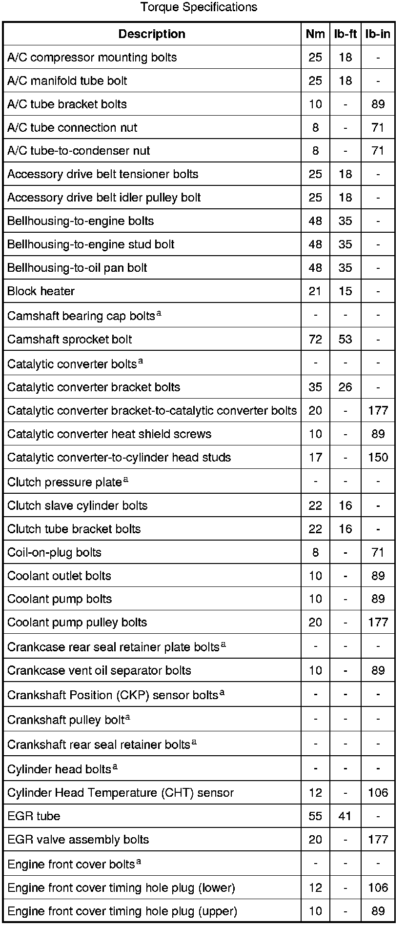 Torque Specifications