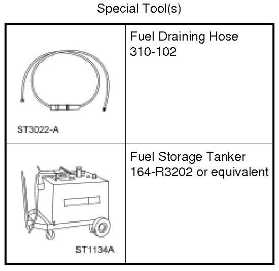Attach the Fuel Storage Tanker to the Fuel Draining Hose and remove approximately one-eighth tank of fuel (from a completely full tank), lowering the fuel level below the fuel level sensor mounting flange.