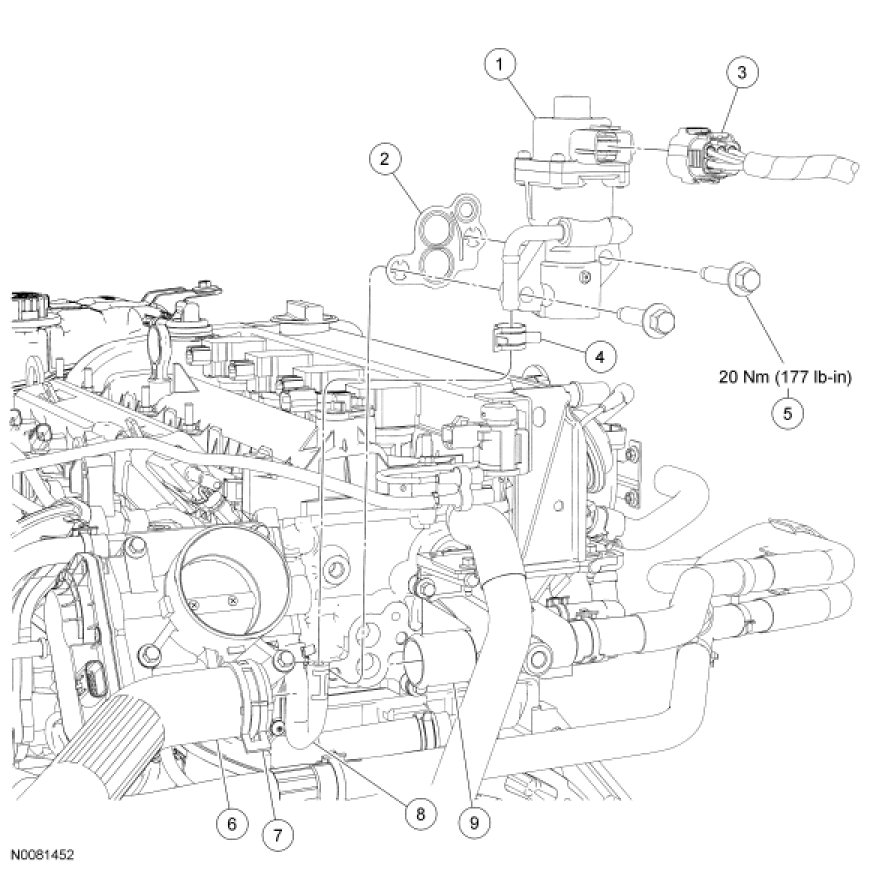 7. NOTICE: Do not use metal scrapers, wire brushes, power abrasive discs or other abrasive means to clean the sealing surfaces. These tools cause scratches and gouges that make leak paths. Use a plastic scraping tool to remove all traces of the exhaust gas recirculation (EGR) valve gasket.