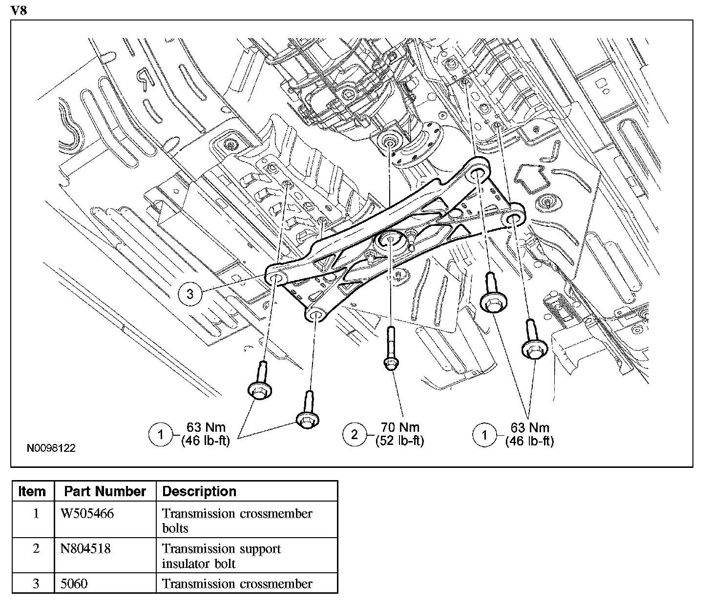 6. With the transmission support insulator neutralized, tighten the transmission crossmember bolts.