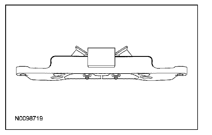 NOTICE: The transmission crossmember must be installed in the same orientation as it was removed. An incorrectly installed crossmember will change the driveline angle and cause a shudder when accelerating from a stop or above average engine presence.