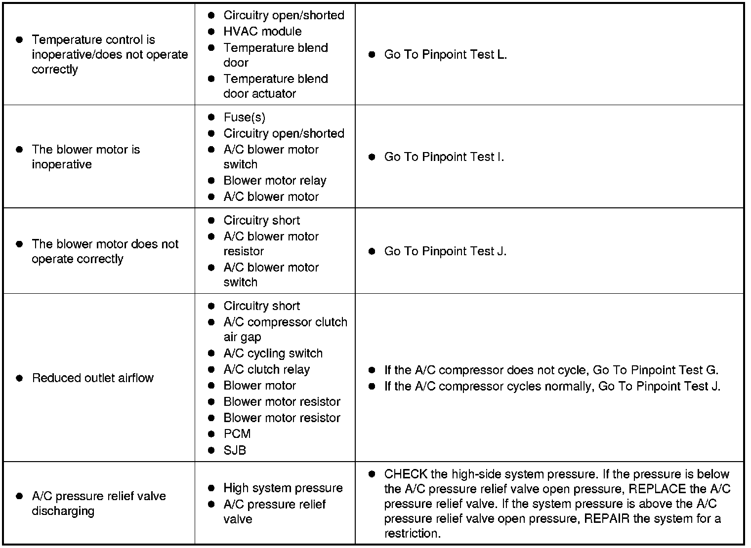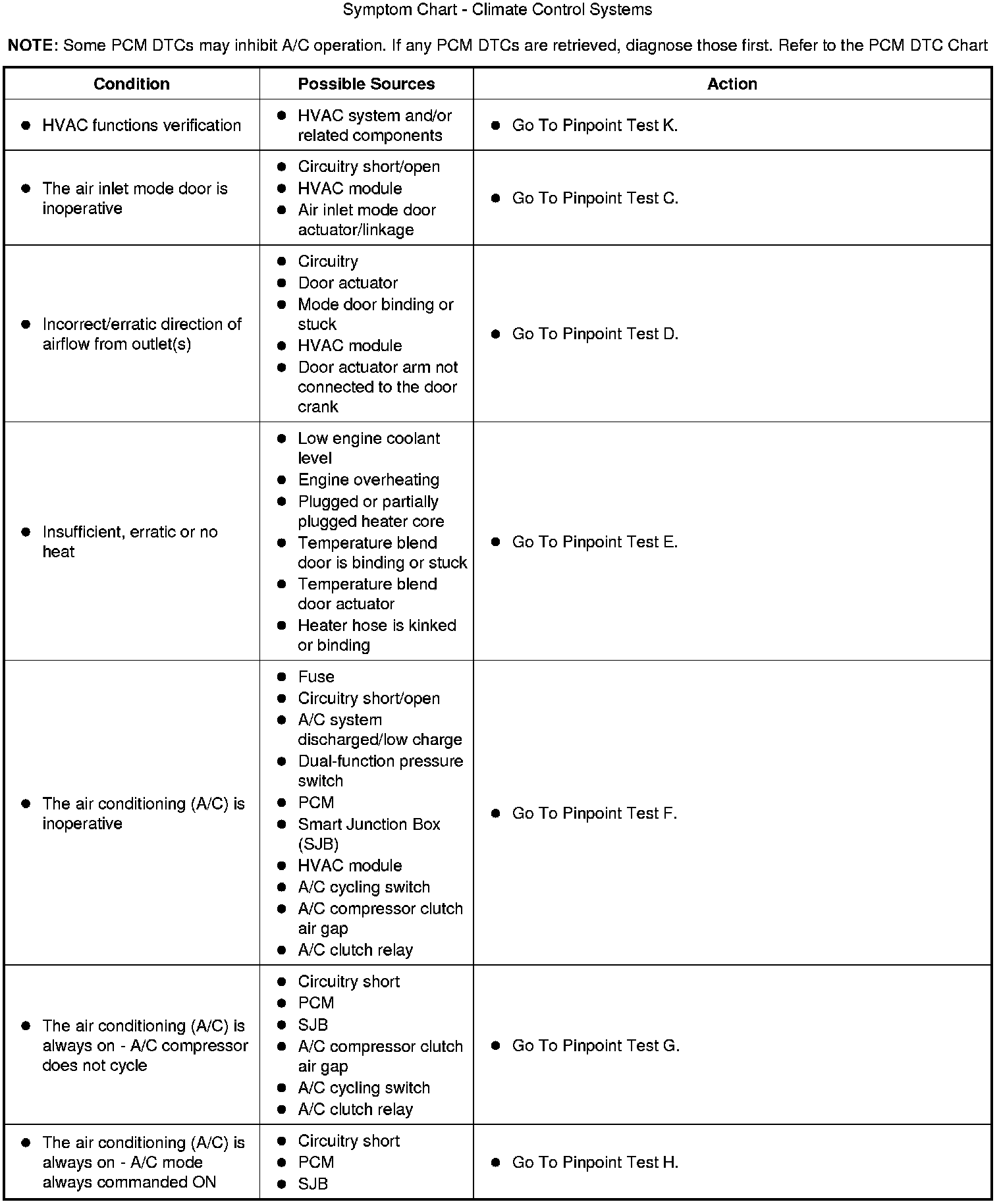 Symptom Chart - Climate Control Systems