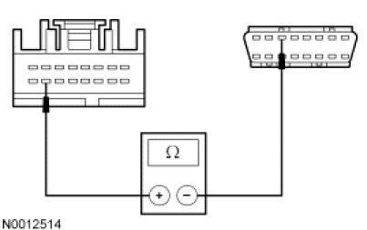 - Measure the resistance between the ACM C290a-15, circuit 1847 (WH/OG), harness side and the Data Link Connector (DLC) C251-3, circuit 1847 (WH/OG), harness side.