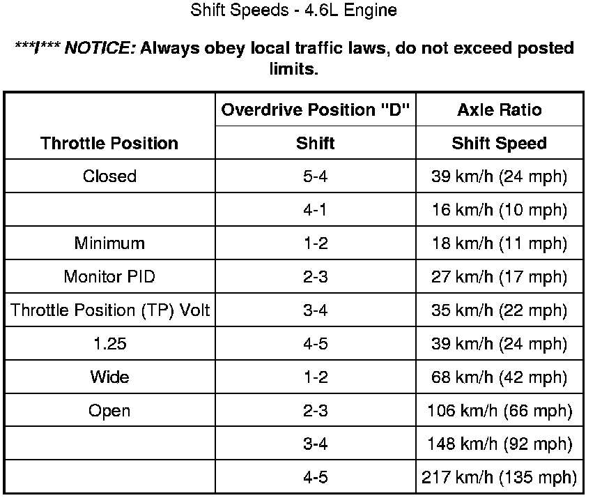 Shift Speeds - 4.6L Engine: