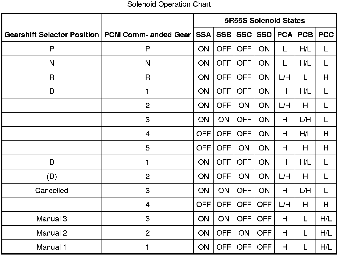 Solenoid Operation Chart: