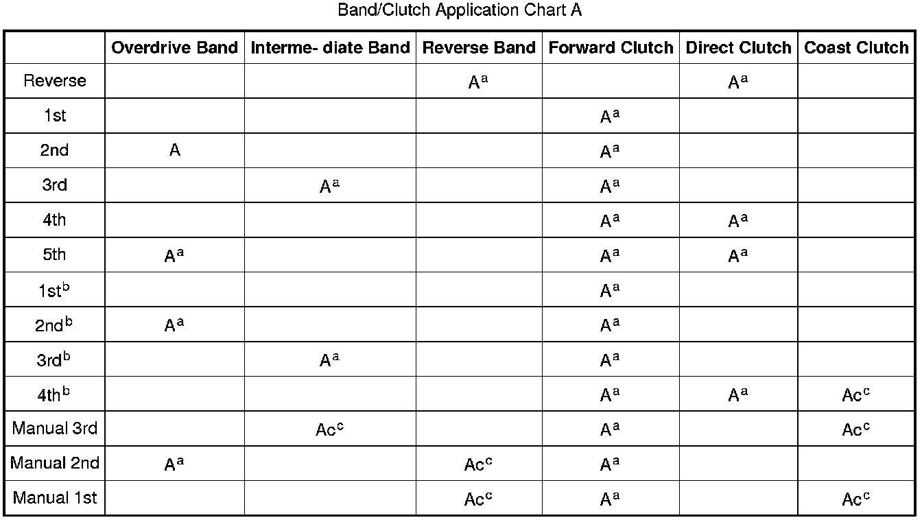 Band/Clutch Application Chart A:
