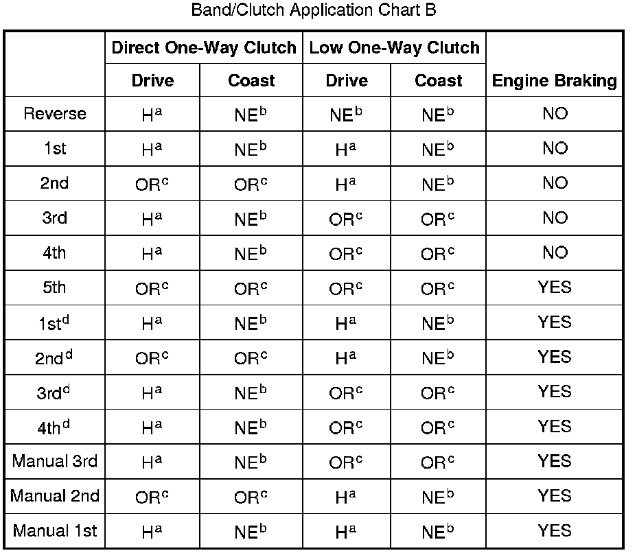 Band/Clutch Application Chart B: