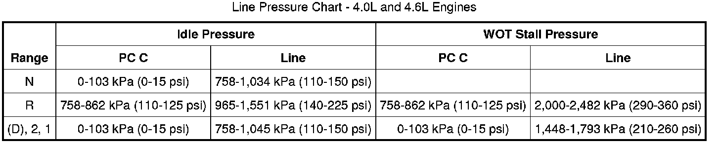 Line Pressure Chart - 4.0L And 4.6L Engines: