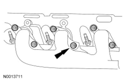 Install a new gasket, the LH exhaust manifold and the 6 new nuts.