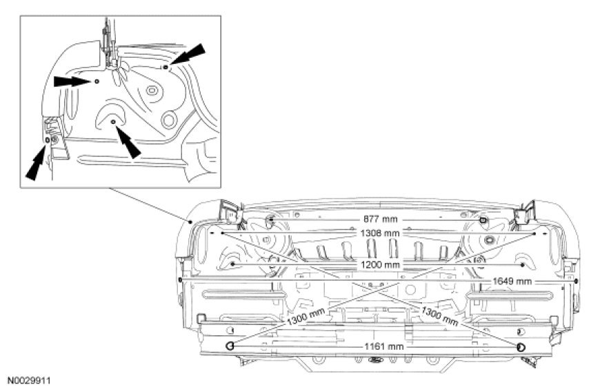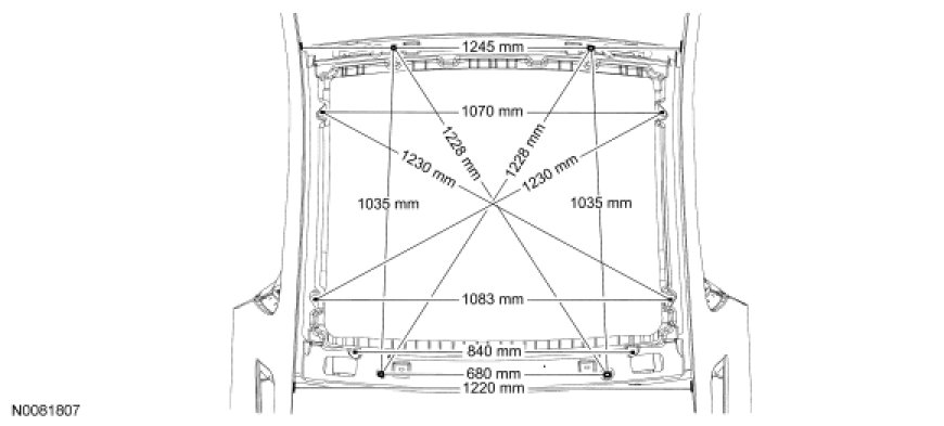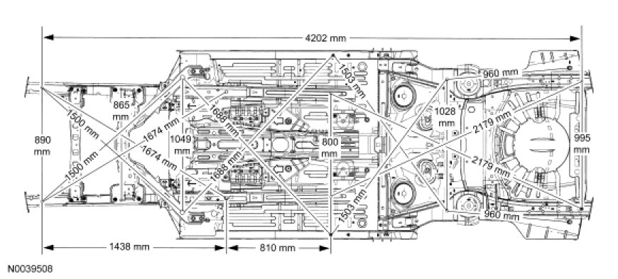 WARNING: Frame rail crush zones absorb crash energy during a collision and must be replaced if damaged. Straighten damaged frame rails to correct frame dimensions prior to frame member sectioning. Failure to follow these instructions may adversely affect frame rail performance and may result in serious personal injury to vehicle occupant(s).