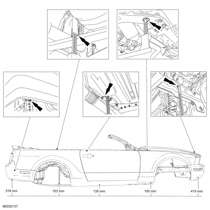 - Rear underbody bracing on convertible models provides additional structural support