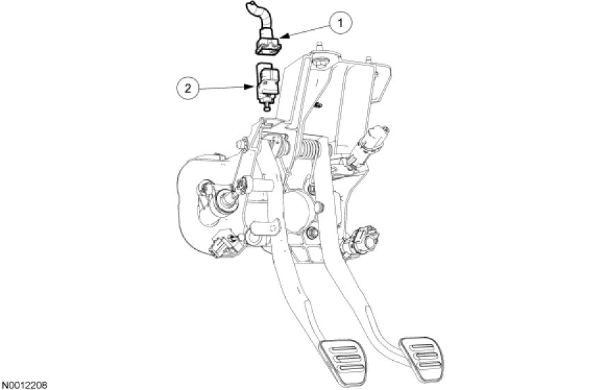 NOTICE: Do not press, pull or otherwise move the brake pedal while removing or installing the speed control deactivator switch. The switch must be installed with the booster push rod attached to the brake pedal and with the brake pedal in the at-rest position. Installing the switch with the brake pedal in any other position results in incorrect adjustment and damage to the switch.