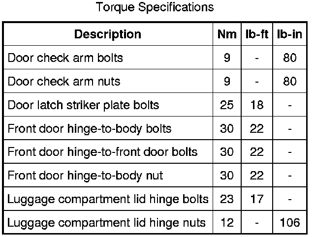 Torque Specifications