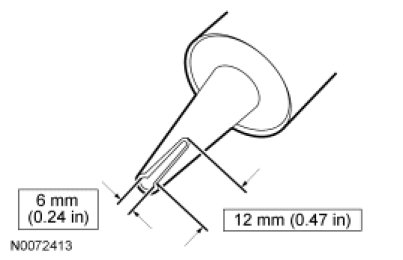Using an appropriate tool, trim the urethane adhesive leaving a 1-2 mm (0.04-0.08 in) base of original equipment urethane adhesive on the pinch weld.