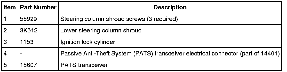 4. NOTE: Replacement of the PATS transceiver does not require the PATS keys to be programmed into the PCM again.
