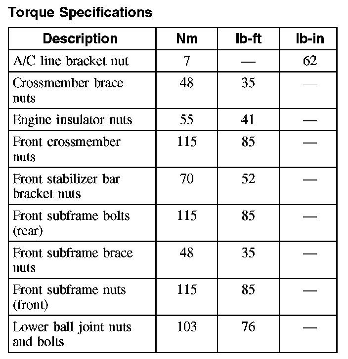 Torque Specifications (Part 1):