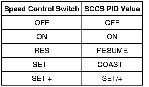 - Press each speed control switch button while monitoring the SCCS PID (speed control switch).