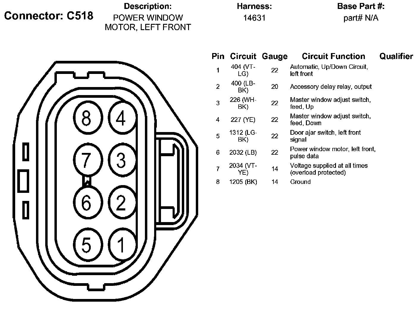 Power Window Motor, Left Front