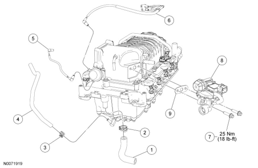 1. NOTICE: If the engine is repaired or replaced because of upper engine failure, typically including valve or piston damage, check the intake manifold for metal debris. If metal debris is found, install a new intake manifold. Failure to follow these instructions can result in engine damage.