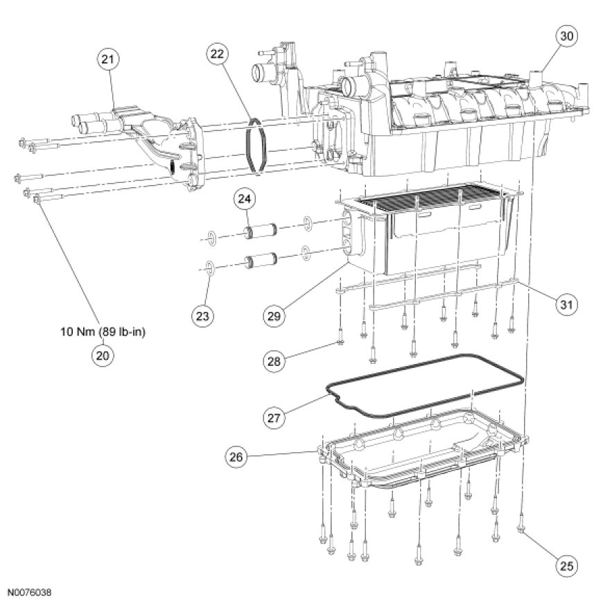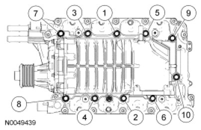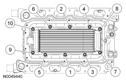 - Tighten in the sequence shown to 10 Nm (89 lb-in).