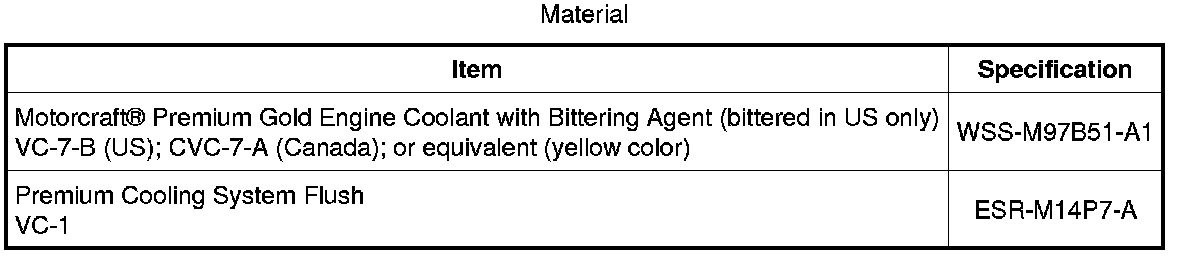 Use an appropriate cooling system flusher to backflush the heater core. Use Premium Cooling System Flush or equivalent meeting Ford specification ESR-M14P7-A. Flush with water thoroughly after using VC-1 or equivalent prior to refilling the cooling system