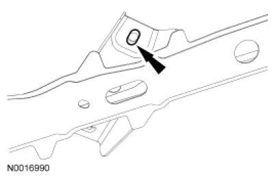 2. NOTICE: Do not elongate the hole any more than indicated by the etchings on the subframe or damage to the subframe may occur.