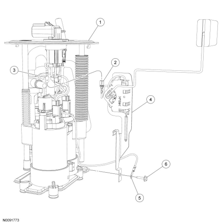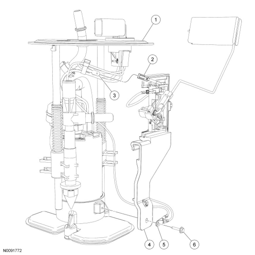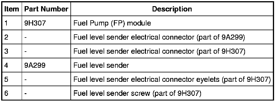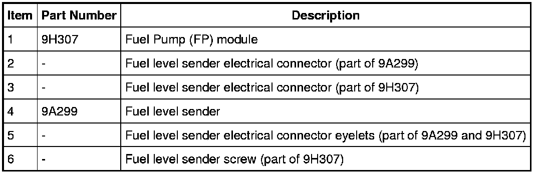3. Remove the screw, the electrical connector eyelet(s) and remove the fuel level sender from the FP module.