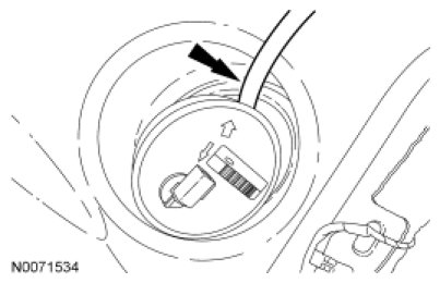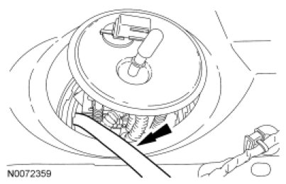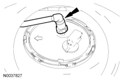 5. NOTE: This step will remove approximately one-eighth tank of fuel from a completely full fuel tank and the majority of any residual fuel from the fuel tank filler pipe. Also the fuel in the fuel tank will be below the Fuel Pump (FP) module mounting flange for FP module removal without fuel spillage.